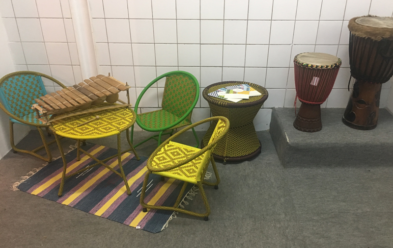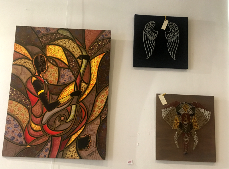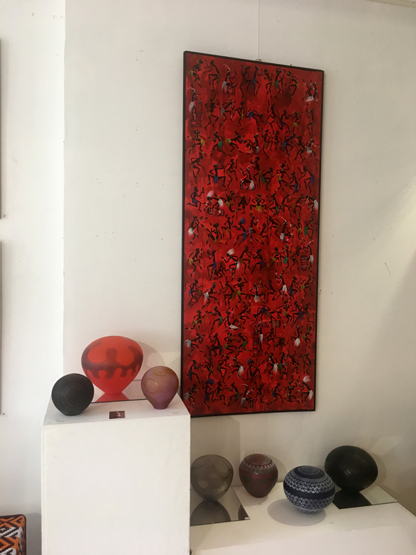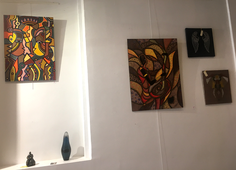 Peinture, sculpture, verrerie, couture, bijoux… Constituent autant de savoir-faire dévoilés à travers les œuvres haut en couleur exposées dans ce contexte. Le mobilier confortable et minimaliste exposé dans ce cadre rend compte d’un artisanat respectueux de la Nature et du concept écologique favorisant l’usage du nécessaire et le bannissement du gaspillage.